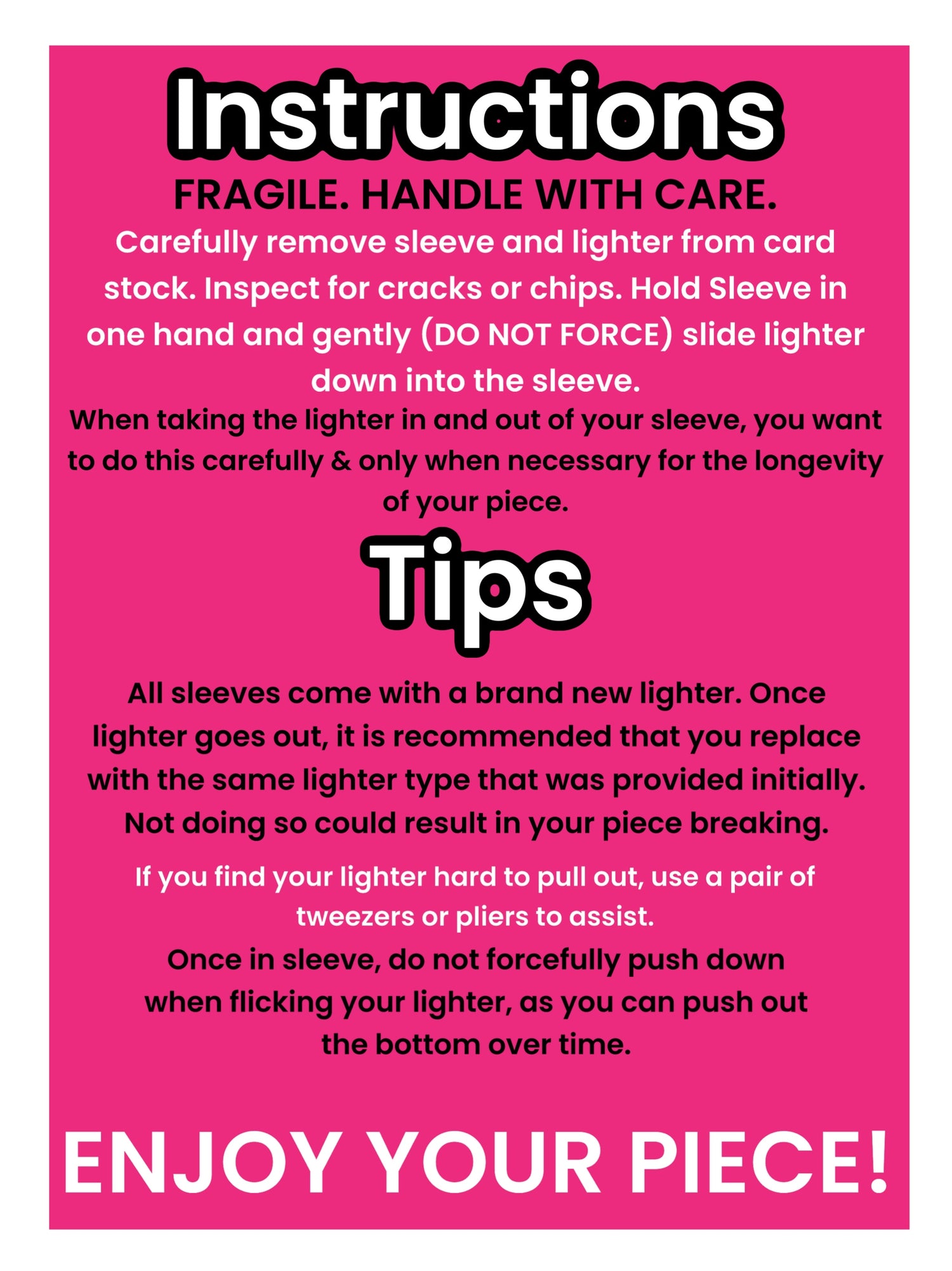 If damage occurs during shipping, we will remake the item free of charge. If you disassemble/alter any piece in ANY way, you void any refund, return, or exchange. This includes damaged occured by buyer. Which may include but not limited to, water damage, breaking by dropping, overuse, etc.